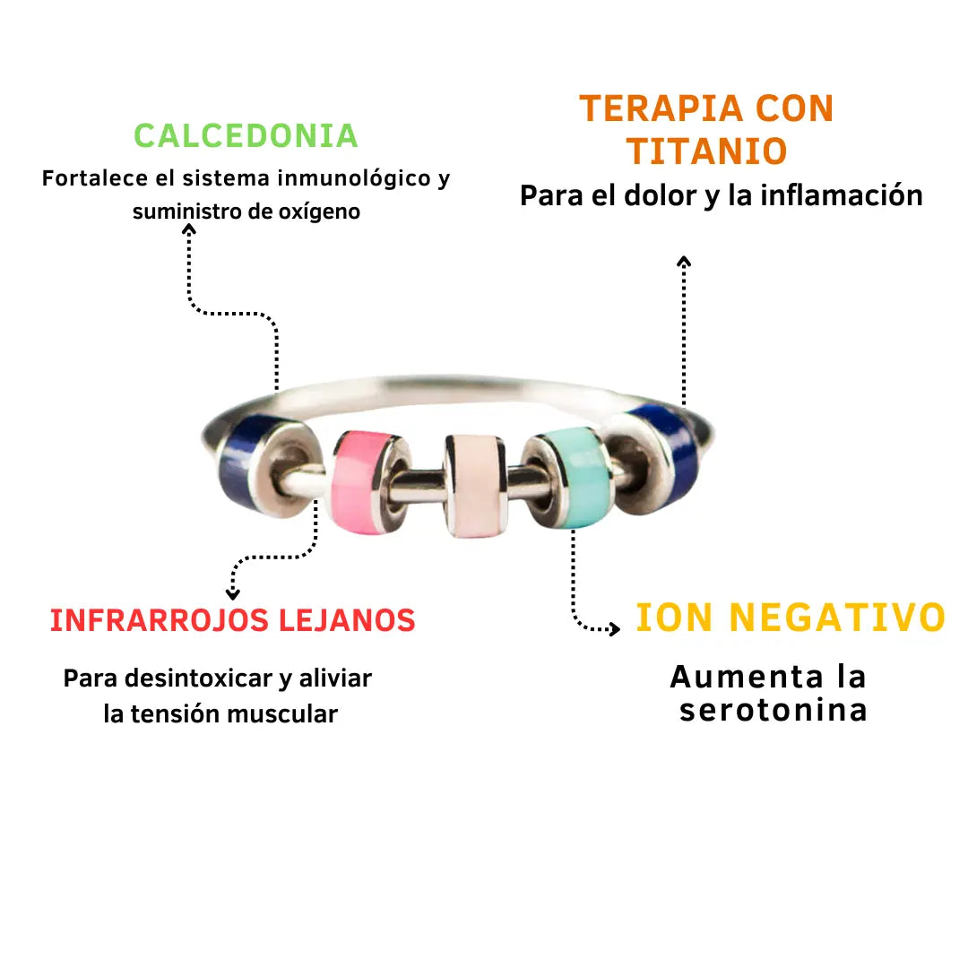 Esta terapia ayuda a realinear los canales de energía que interrumpen el flujo natural del cuerpo y le ayuda a curarse a sí mismo . Los iones de titanio ayudan a aliviar determinadas dolencias como la ansiedad, la depresión y el insomnio, o dolencias físicas como los problemas digestivos