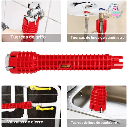 Diseño multifuncionalque te permite ajustar o aflojar los distintos tipos de tuercas estándar que hay en el mercado.