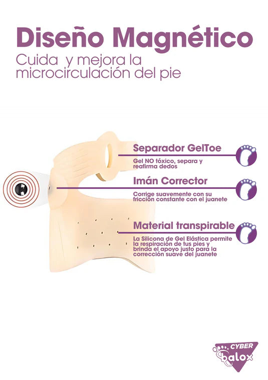 ✔️ Imán Corrector: Actúa con precisión sobre el juanete, mejorando la microcirculación y aliviando el dolor.