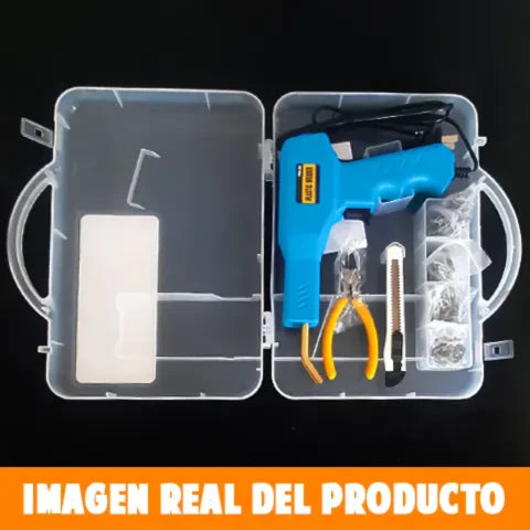 Con la innovadora PISTOLA SOLDADORA, podrás unir o reparar tus objetos plásticos 🛠️ aplicando calor de manera precisa, ¡dándoles una nueva vida! ♻️