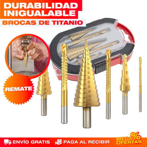 1. Un Set de 6 Brocas Escalonada de Titanio