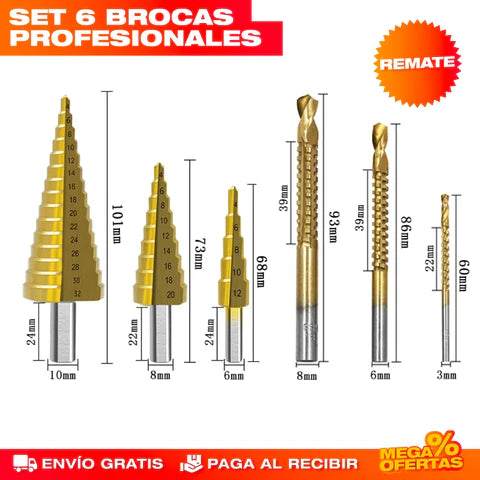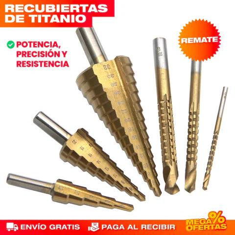 SET DE 6 BROCAS ESCALONADAS DE TITANIO