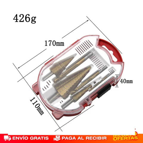 Es hora de actualizar tu caja de herramientas con este Set de Brocas Escalonadas con Recubrimiento de Titanio, diseñadas para ofrecer máxima precisión, durabilidad y versatilidad. Ya sea que trabajes con acero, madera, plástico o metal, estas brocas convierten las perforaciones en un proceso rápido, eficiente y sin esfuerzo.