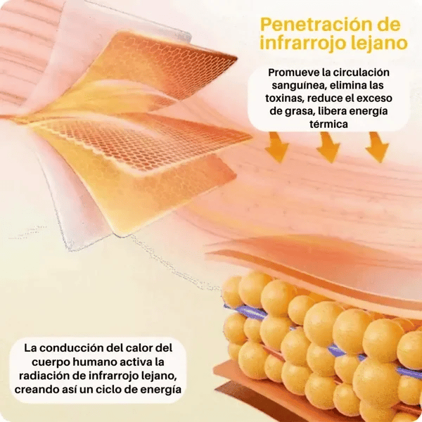 Los resultados de la investigación muestran que los módulos de masaje microvibrantes en los pantalones cortos moldeadores de fibra ionizada lce silk son prendas innovadoras que tienen un area de cintura, están hechas de tela recubierta de germanio y son capaces de generar energia infrarroja sin fuentes de energia externas. Según los hallazgos de New York Medicine, la terapia de infrarrojos no sólo mejora la circulación sanguínea, apoya el metabolismo celular y estimula la producción de colágeno, sino que también aumenta la quema de calorías en el cuerpo, lo que conduce a la pérdida de peso