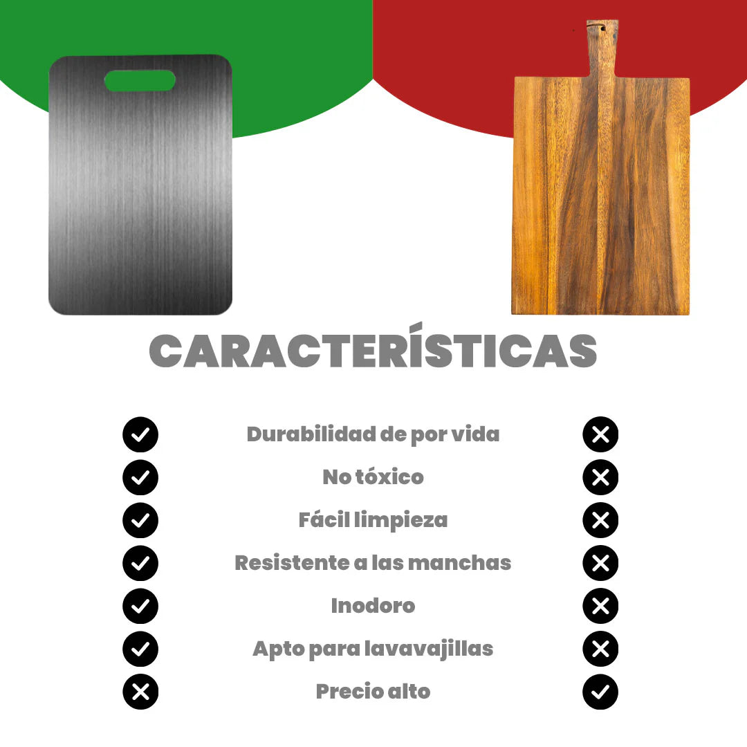 ✅Dura toda la vida. Diseñada con titanio de alta calidad, esta tabla de cortar está hecha para resistir años de uso sin desgastarse.