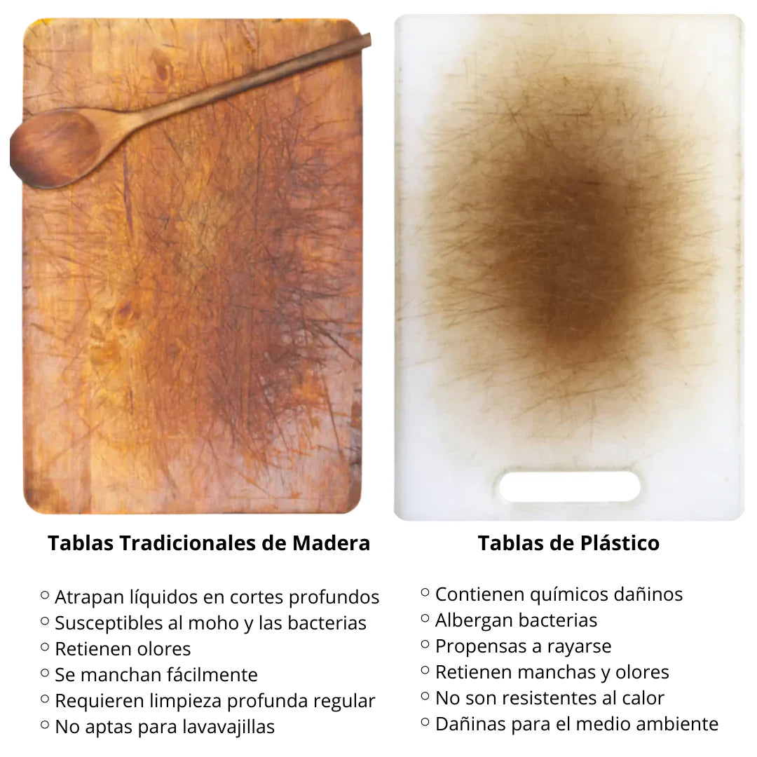 ✅Libre de químicos tóxicos. Sin químicos dañinos como BPA y ftalatos, esta tabla garantiza que tus alimentos permanezcan seguros y sin contaminarse.