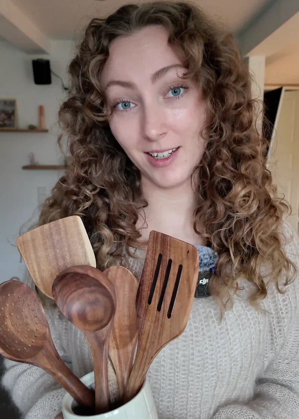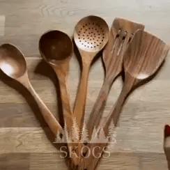 Nuestros utensilios de diseño escandinavo están hechos de teca natural y tratados con aceite de oliva para una mayor durabilidad.